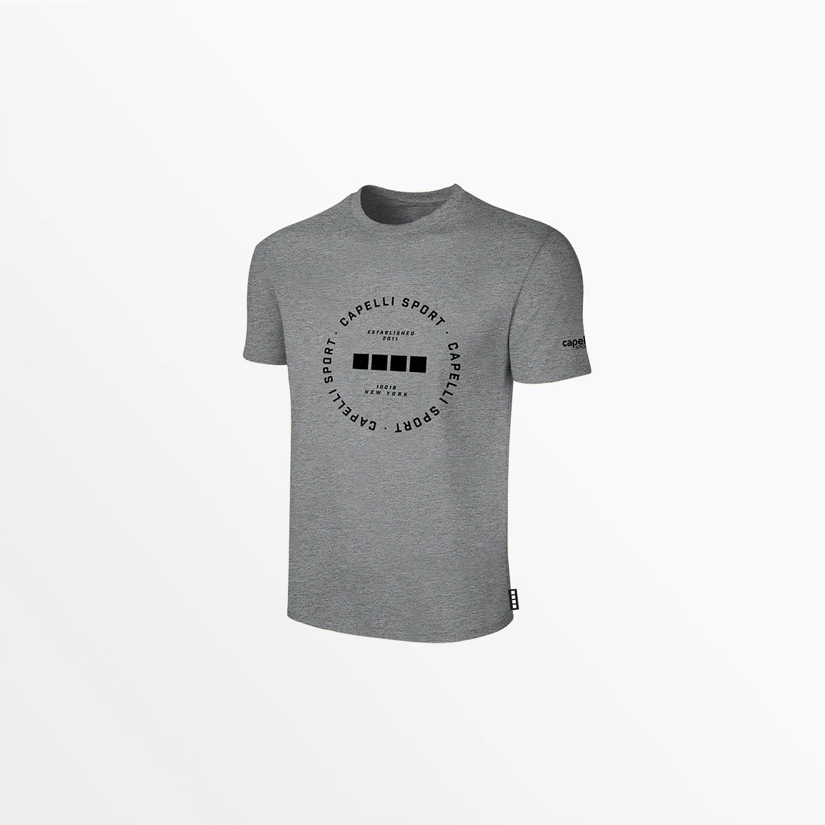 100% cotton classic crew-neck short sleeve tee for everyday wear, now available with fresh new prints. The circular Capelli Sport text surrounding our signature 4-Cube logo gives these basic tees a modern and graphic update, adding subtle interest to any outfit.
