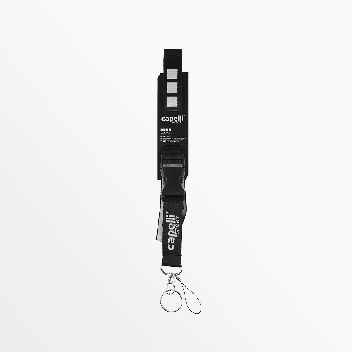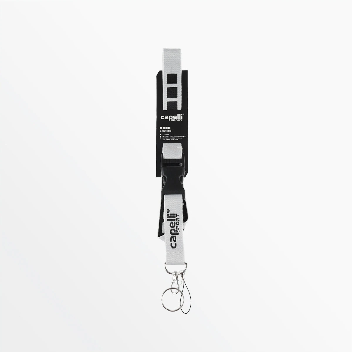 The Capelli Sport lanyard is made with durable fabric and a detachable clip for long-lasting comfort and quick-release access to items.